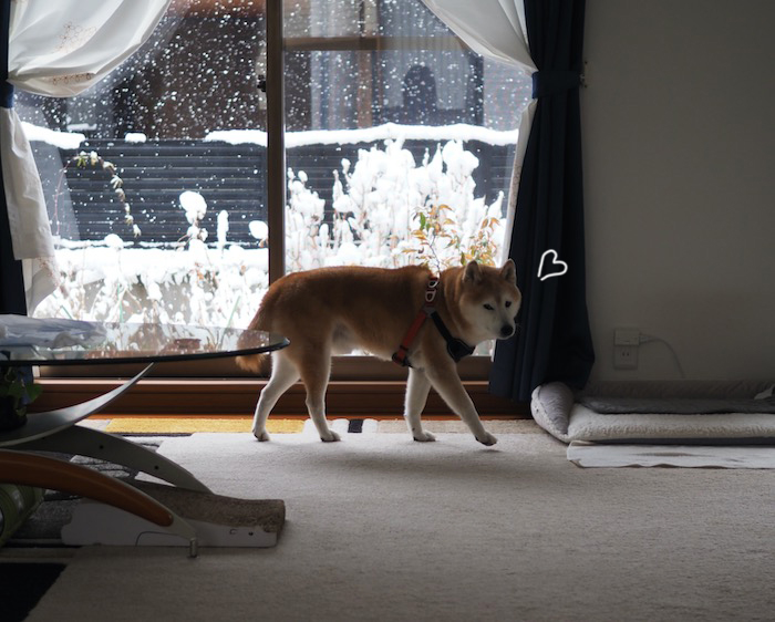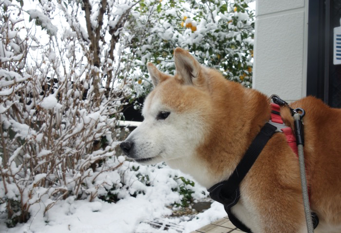 午前中からパラパラと雪が降り出した湘南地方。でも、積もるという感じではなく、「舞う」に近かったかな。3時を過ぎても雪は舞っていたけど、老いても柴男子!貫太、どんな天気でも、散歩には行かねばならぬ。すぐに溶けてしまう雪だったから、カッパ着用で出かけました。