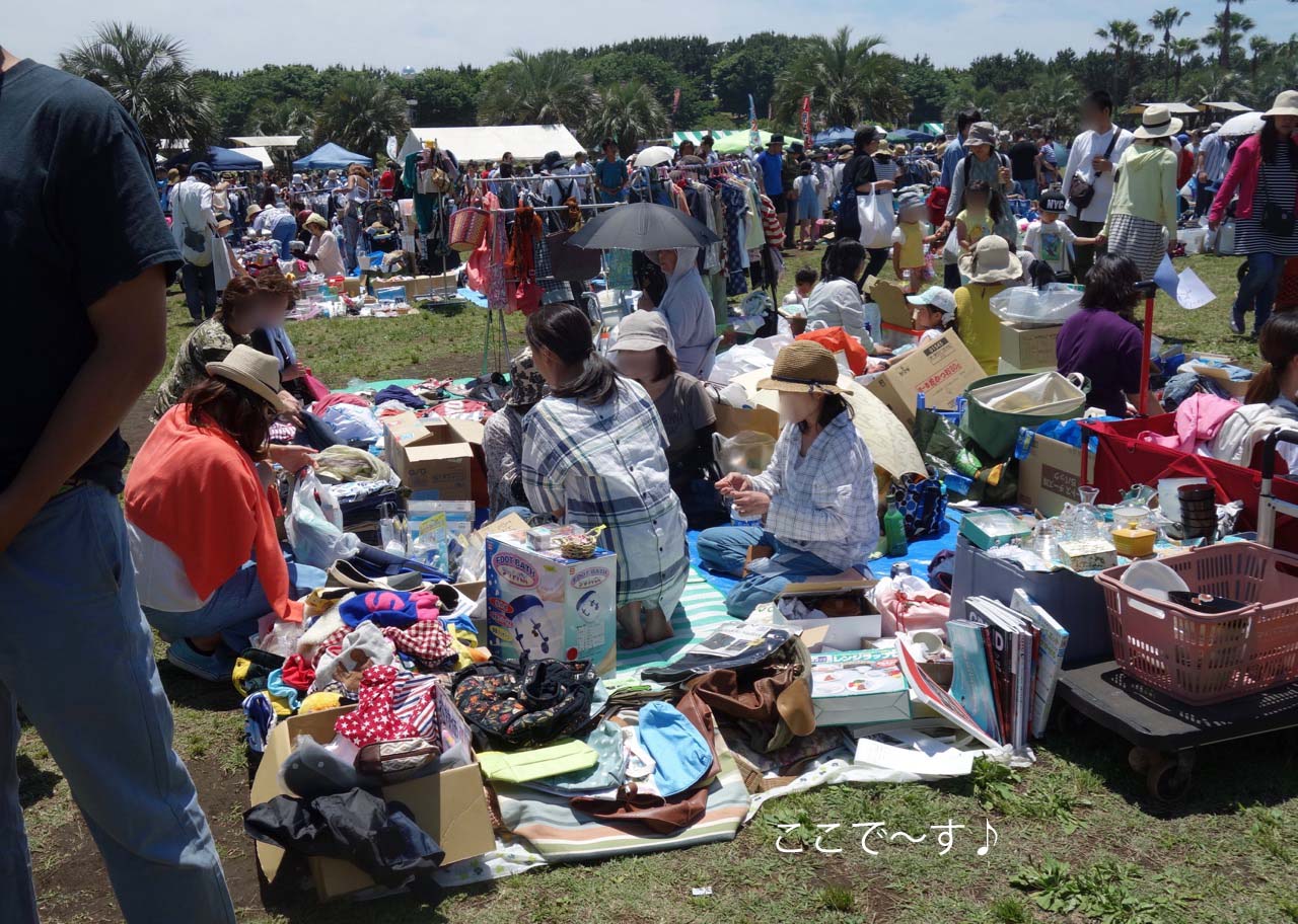 ここは「辻堂海浜公園まつり」でのフリーマーケットの会場で〜す!