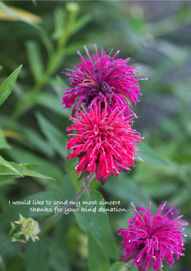 本日もご訪問ありがとうございます。時折パラパラっと雨が降る程度で済んだ湘南地方。ベルガモットの花にも水滴が…九州の方は連日の豪雨。特に被災地熊本は心配です。これ以上の被害がないことを祈ります。さて、今日はみなさまにお礼です。昨年の秋、個人で犬や猫の保護活