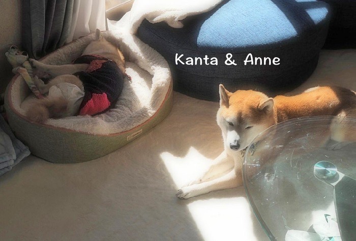 早いもので、1月も明日で終わり。今日は日差しが少なく、寒さが身にしみます。10日以上前に、タロ兵衛に買ったお花、半分くらいまだ元気に咲いていま〜す♡さて、昨日アップした、夫と貫太とあんがリビングで昼寝をしている写真…お気づきになった方も多かったようですね(