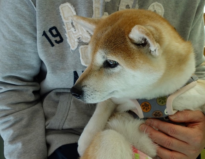 お天気が回復した月曜日、「午前中に行かなくちゃ!」っと、準備をしていたら、出かける気配を察知したあん、いそいそとやって来て、「あたしも行く〜」と嬉しそうだったのに、着いた先が動物病院で、この不機嫌な顔(笑)。今日は、1ヶ月に1度の定期検査。膀胱の状態をエコ