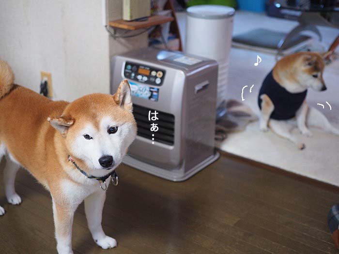 歩道脇のラベンダーです。今って開花の季節?やっぱり暖冬のせいかな??さて、貫太のこの冴えない表情…貫太がこんな顔をするのは、母ちゃんがしつこい時と、あんに絡まれた時。今回は、あんが原因でした(笑)。夕方の散歩前、いきなりテンションが上がったあんが、貫太に