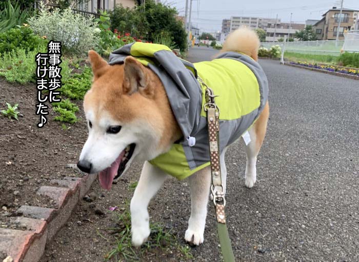 ここ2日ほど、断続的に強い雨が降っている湘南地方。でも、昨日の夕方4時ごろ、一旦小雨になったので、「1日1回は外を歩かせたい!」と思って、あんを散歩に連れ出しました。カッパを着せると、ちょっと迷惑そうな顔をしていましたが、外の空気はやっぱり気持ちが良かった