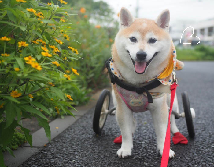 昨日の午前中は、網戸とサッシを叩きつけるような雨でした。点描画のような外の風景(笑)。でも、午後2時ごろには雨が小康状態となったので、あんを誘って散歩に出ました。いつまた降り出すかわからないので、カッパでGO!です。いつも行く歩道には、水が溜まっていたけれど
