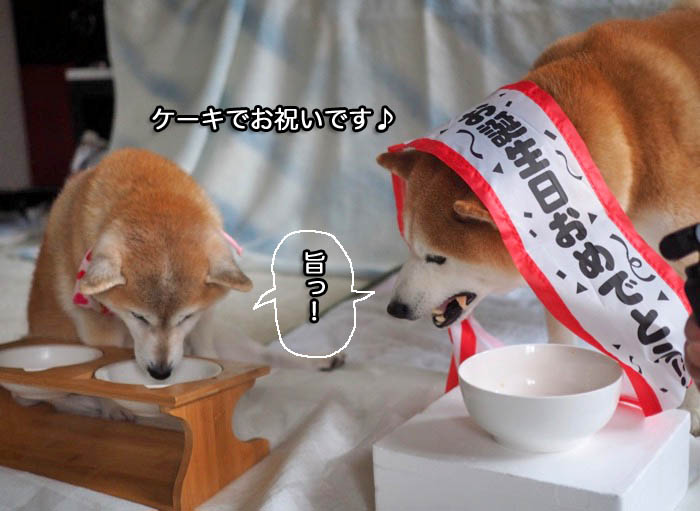 今日の気温は12月並みとのこと。雨も降っていて、寒〜い午前中、自治会の会合があって、帰宅したのが11時半近く。そこから準備して、仲良したろー母さんが贈ってくださった、はなとしっぽさんの犬用バースデイケーキを、毎年恒例のバタバタの中、美味しく2匹はいただきまし