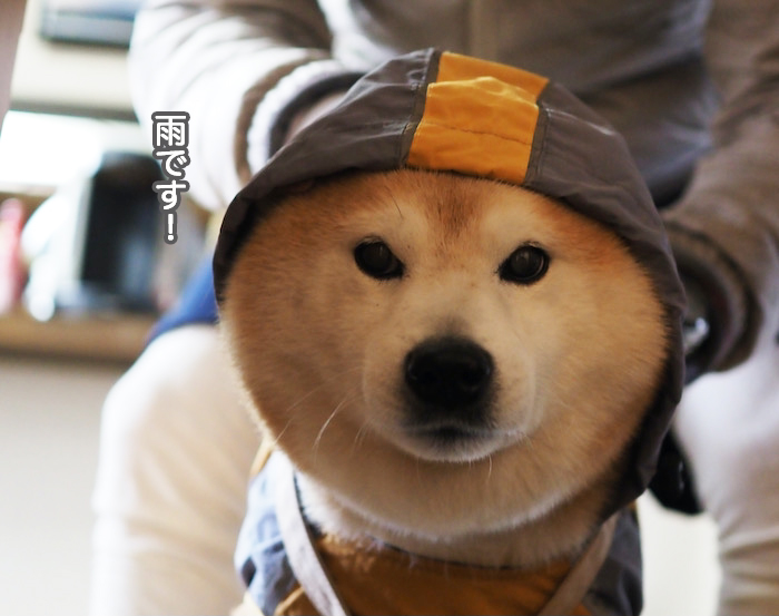 予報通り、お昼頃から冷たい雨が降り出しました。午後は確実に雨になりそうだったので、病院から戻った11時に、急いであんを散歩に連れ出しました。おかげさまで、ギリギリ降られずに行けましたでも、貫太はどんなお天気でも行かざるを得ません。今日の夕方は、カッパで出か