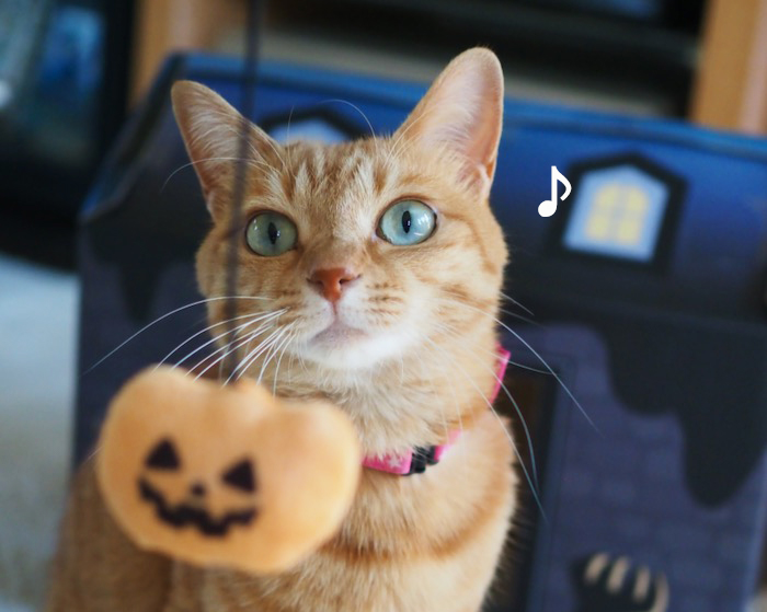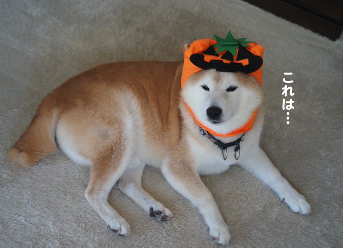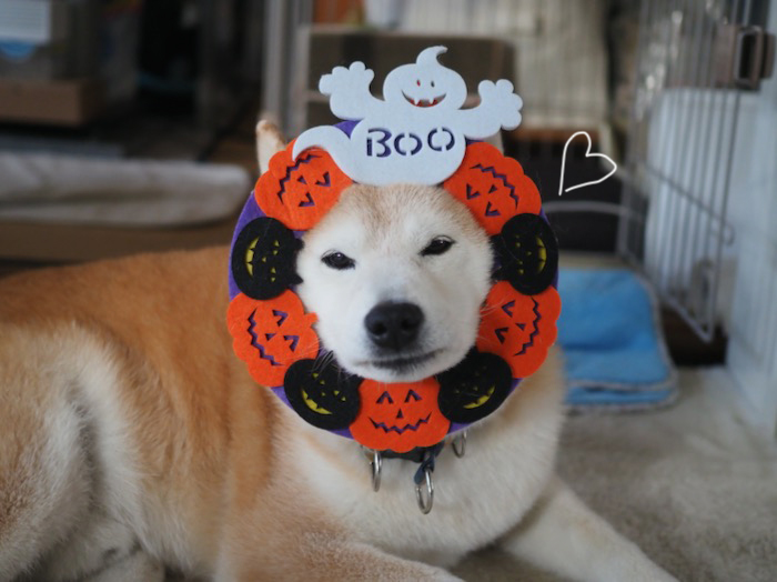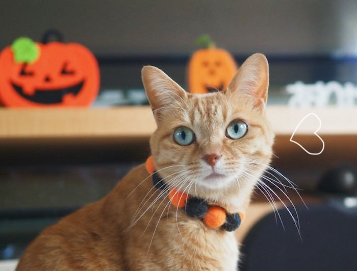 10月31日。今日はハロウィーン。夫も私も、仮装して「いぇ〜い」なんて年代でもないので、普通の月末(笑)。でも、せっかくなので、ちょっぴり雰囲気は味わいたくて、毎年犬猫たちに協力してもらって、それっぽい写真だけは撮っています。まる子には、去年100円ショップでゲ