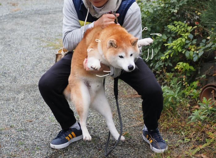 今日は朝から快晴!でしたが、昨日はどんよりしたお天気でした。そして、貫太の表情も、朝から、どんより〜と言うのは、1ヶ月に1度のサロンの日だったから。いつもと全く同じ反応でハーネスを付けられ、“例のポーズ”で抱き上げられ、諦め顔で車に乗り、サロンに向かった