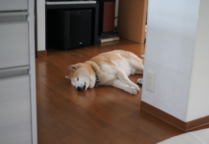そんなに暑かったっけ?貫太がフローリングの上で寝る季節到来で〜す。にほんブログ村貫太&あん&まる子は2つのランキングに参加しています。ペットランキングありがとうございます♡