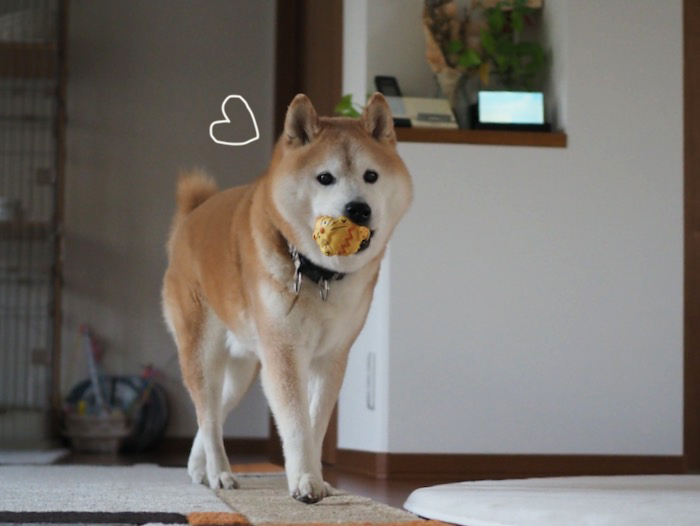 まだ寒い2月ごろから花を咲かせていた母屋の梅が、いつの間にか実をつけていました。梅は逞しいっ さて、昨夜の風景。夜の散歩から戻り、リビングに勢いよく入ってきた貫太に驚いて逃げるまる子この後、爆走する貫太の大量写真で〜す。(動きが速く、夜の室内のため、ブレ