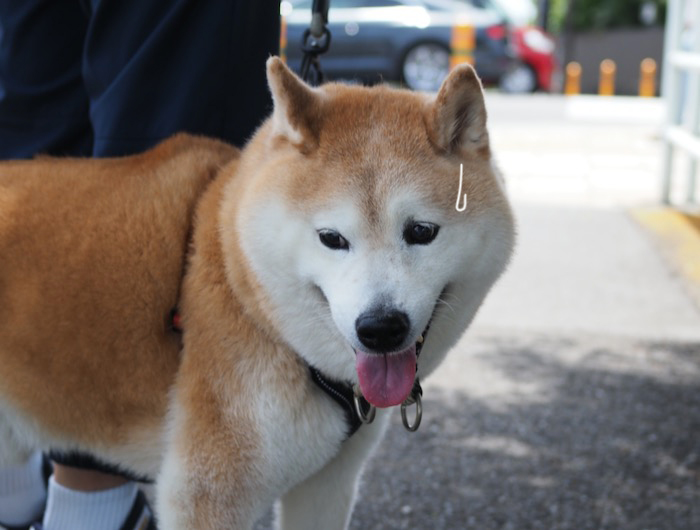 昨日は小雨が降ったりやんだりのお天気でした。車で行こうかと思っていましたが、(どこへ?)予約の時間が近づくと、雨は止んでいたので、歩いて行く事にしました。(だから、どこへ〜??)なるべく歩かせて、大小、出す物を出させたかったので。(だって、ビビって待合室
