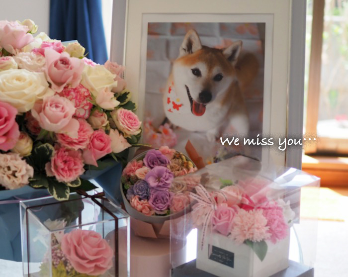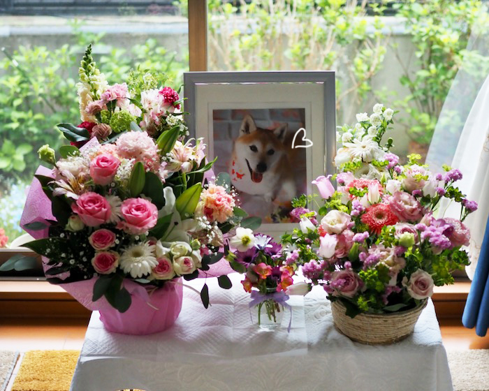 4月13日、今日はあんの命日でした。あんを看取って丸3年が経ちますが、あんのために、お花を贈っていただきました。春らしい、可愛い色の、お花です。散りゆく桜を見ながら、ここ数日、気持ちがざわついていたのですが、こんなに素敵な花々を見て、「まぁ、あんちゃん、
