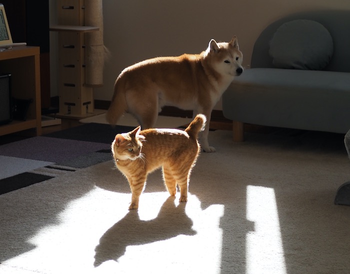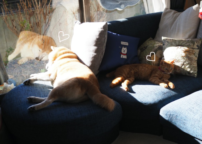 わ〜いお日様が出た!湘南地方では久しぶりの晴れ 貫太もまる子も、仲良く日向でお昼寝しています。バスタオルも洗ったし、布団も干したし…あ、エアコンも消したし。お日様って本当にありがたい♡かんまると一緒に感謝で〜す。にほんブログ村貫太&あん&まる子は2つの