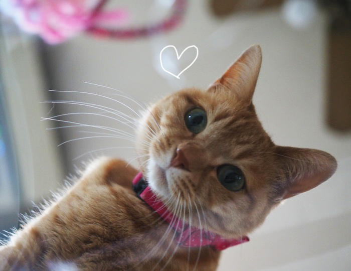 今日も暑かったですね。道路脇の花壇に咲くピンクのペンタスです。さて、茶トラまる子、特に夜は、目がまん丸になって可愛らしいのですが、明るい昼間は、黒目が細くなるので、少しきつそうな顔になり、遊びに夢中になると、より“怖い”顔に見えちゃいます。この時は、私が