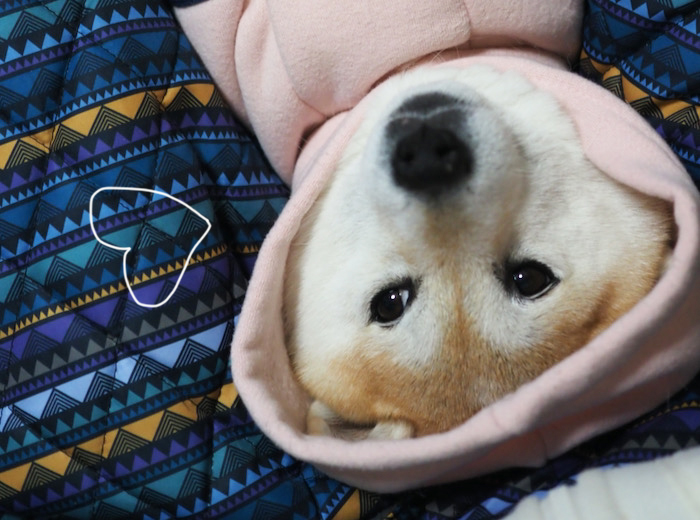 祝日の水曜日、おかげさまで湘南地方は穏やかな晴天となっています。北海道、東北、北陸方面では吹雪や大雪になっているとのこと。心からお見舞い申し上げます。さて、少し前の日差しのない寒かった日、あんにピンクのパーカーを着せていました。貫太同様、フードは苦手です