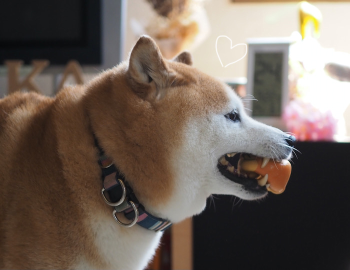 推定年齢15歳の貫太。今のところ目は見えているし、耳も聞こえている様子。そして、毎日ボール投げを楽しんでいる。ただ、やる気はあるんだけど、ボールキャッチが、相変わらず、下手ふにゃふにゃボールでしか遊ばない理由の一端は、これかもしれない(笑)。ま、遊びたい気