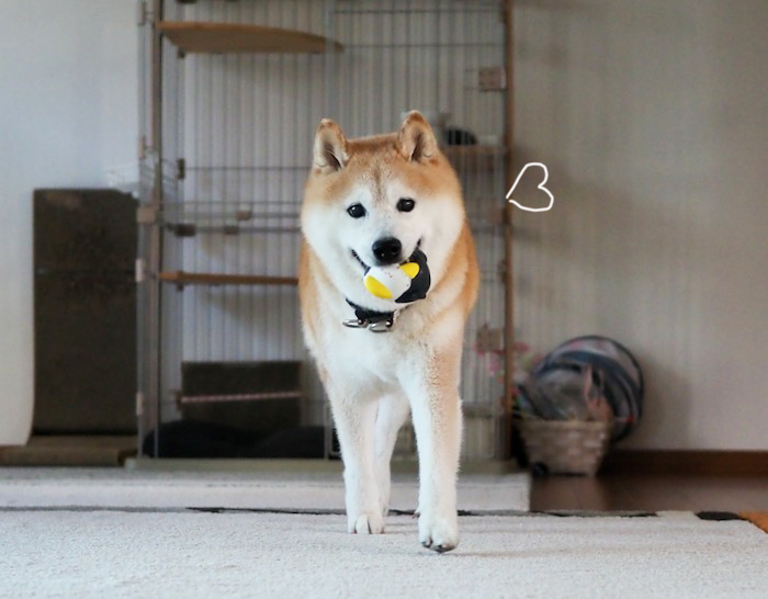 セミは鳴かなくなったけど、今日も真夏のような1日でした。この夏から、まる子は2階にあるリンリンボールを、赤以外も咥えて下に降りてくるようになりました。先日は、1階の廊下に3個も落ちていた。ボラ仲間さんが3年前にまる子にくださった、ちゅ〜るに付いていたおま