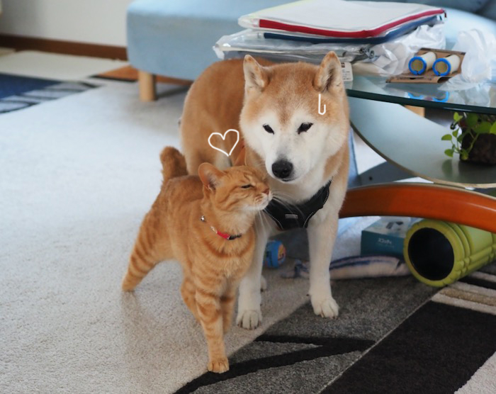 早く咲かないかな〜、我が家のミモザ我が家周辺の雪はほぼ溶けてなくなりました。北側の日陰に少しだけ残る程度。やはり北国や北陸地方とは違いますね。さて、日差しが戻った今日、相変わらず貫太に積極アプローチしていたまる子です。そんな2匹の、少し前からの様子を動画