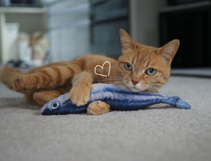 昨夜?明け方?から降り出した雨は、朝まで残っていました。今が満開のミモザにも雨粒が…さて、日頃から猫の体の柔らかさに感心していたので、こんな風に、全身を使って、サンマの蹴りぐりみで遊ぶまる子を、スローモーションで撮ってみました。すると、肉眼では見えなかっ