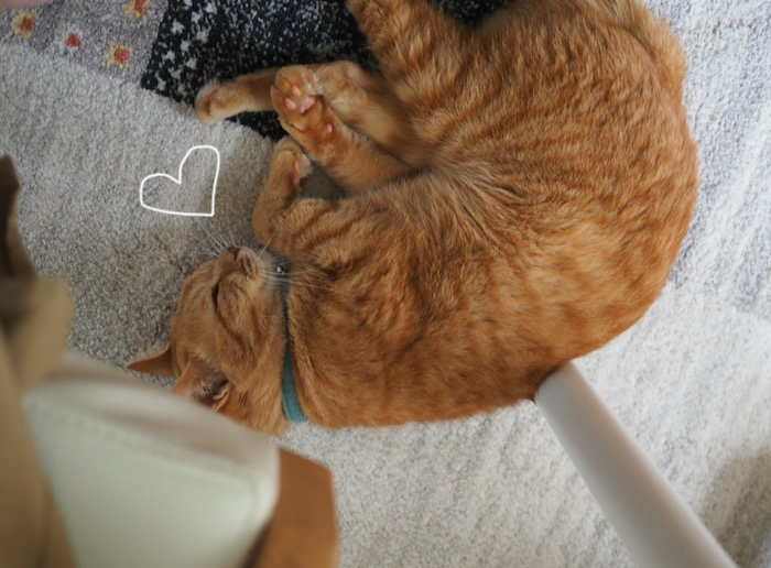 今朝は寒かったけど、ありがたいことに、お日様たっぷりで、日中は気温も少し上がりました。猫の手も借りたい!ってほどの大掃除はしていないのですが、普段しないような所の拭き掃除などをしたので、ちょっと疲れ気味。そんな私を癒してくれるのは、足元でごろごろ横になっ