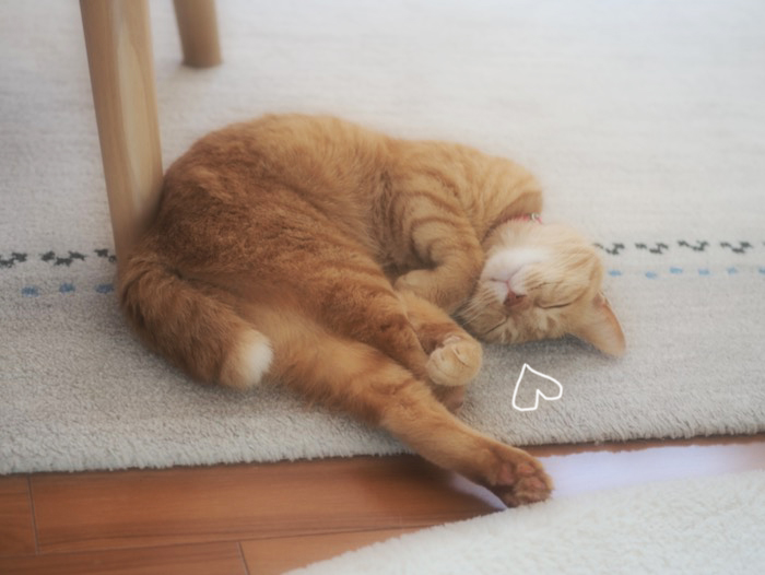 今年最初で、(おそらく)最後のさくらんぼ♡ちょっと酸っぱかったのが残念…さて、パソコンに向かっていた私の足元で、「コテっ」って音がしたので下を見たら、あらまぁ。まる子が、こんな格好で、寝ていました。思わず椅子から立ち上がり、写真をカシャカシャ撮っていたら