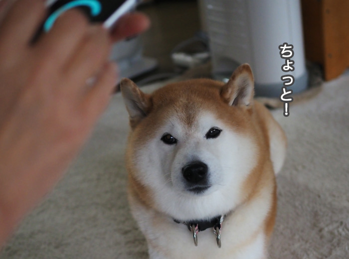 昨日の午後3時55分。そろそろ貫太が散歩に出かける時間です。スマホを見ている夫の前で、プレッシャーをかける貫太。「父ちゃん、なにスマホなんかいじってるの⁈」とでも、言いたげ。いやいや、雨雲レーダーで、散歩中の天気を確認しているんだよ。一応カッパを着せて出かけ