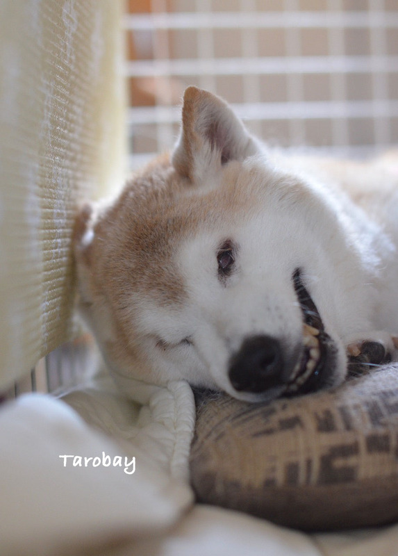 タロ兵衛がやっと寝付いた明け方4時半頃は、まだほとんど雨は降っていませんでした。ところが、ミッチーが起きた8時には、土砂降りいえ、いえ、台風ですよ。ミッチーも私もカッパを着て出動!確かに…夜中のうちにオシッコを済ませていたタロ兵衛、起床は午後1時。低気圧