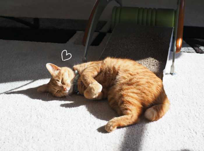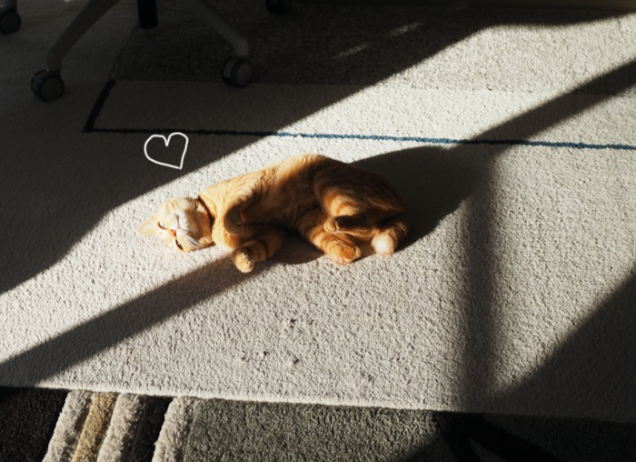 華やかな雰囲気の椿が咲いていました。今日は朝から日差したっぷりで、まる子は、リビングの日向で、蹴りぐるみのサンマを抱き抱えて、楽しそうに、蹴ったり、噛んだり その後、必死な形相で、毛繕い。顔、怖っ(笑)部屋の中に日向とサンマがあれば、ご機嫌なまる子でし