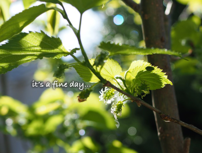 雨が上がり、朝から日差したっぷりいつの間にか、庭の桑の木に、花?実?らしきものがついていた。季節はどんどん進んでいきますねぇ。土曜日は晴れ、今日も晴れ。なのに、久しぶりのサンサンマルシェに出店予定だった昨日だけ雨。(荒天予報だったのでマルシェの開催は中止