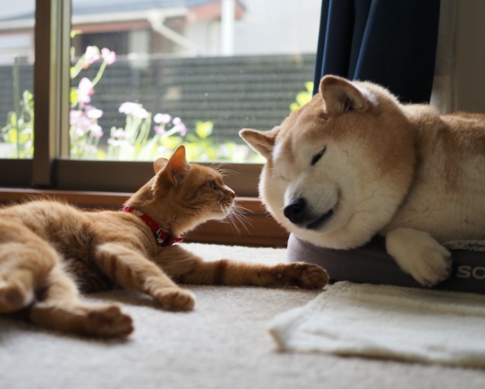 お日様が出ているってだけで、めっちゃ嬉しいっ!2階のまる子部屋は、日差したっぷり いぇい! まる子が日向ぼっこをしながらのんびりしていたら、貫太がぬっと現れて、まる子に向かって方向変換。ちょっと身構えるまる子。そして…猫パンチバシッ!!まる子は本気では