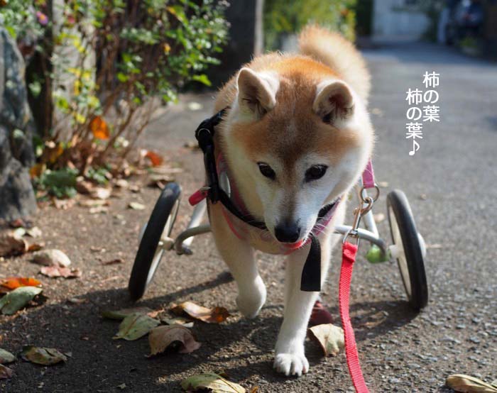 ねぇ、知ってる?柿の葉とか、桜の葉とかも、きれいに紅葉するってこと。紅葉 = イチョウやモミジって私は思っていたけど、他にも色んな植物が紅葉する。そういう事に気付かせてくれたのは、犬との散歩♡特に、ぐずぐず歩きのミッチー&あんのおかげで〜す(笑)。文化の日