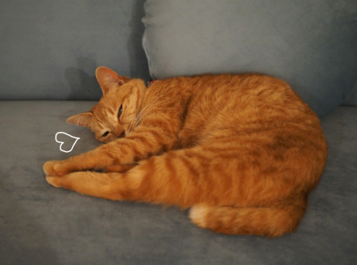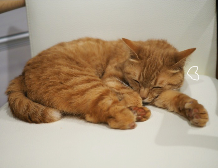 昨夜から降り続いた雨は、午後には小降りになり、夕方にはすっかりやみました。貫太の「ぎょえ〜っ」な様子は明日にでもお伝えするとして、今回は、貫太と違って、心身の柔軟性が高いまる子のこと。リフォーム前、まる子はよくダイニングチェアの上で寝ていました。この椅子