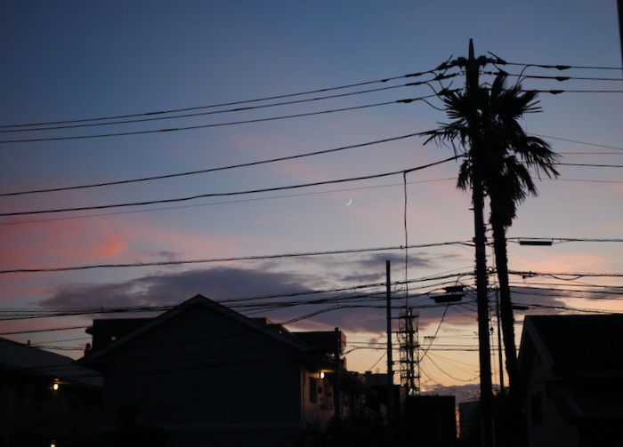 昨日の夕焼けが美しかったので、外に出て、空の写真を撮ってみました。夏至を過ぎているのだから、暗くなる時間が、ちょっとずつ早くなっているはず。散歩も済んで、夜ごはんも食べて、貫太も、まる子も、ゆっくりお休みくださいな。美しい色の夕焼けって、毎日見る事ができ
