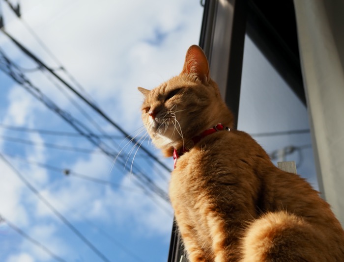 空が、青い…母屋の庭で、勝手に勢力を拡大させているノウゼンカズラです。鮮やかオレンジの花が可愛いんだけど…もはや脅威でしかない。脅威を感じるのは、連日のこの猛暑も。まる子は、日によって寝る階段の位置を変えています。2階の出窓からの風の吹き込み具合とか、1